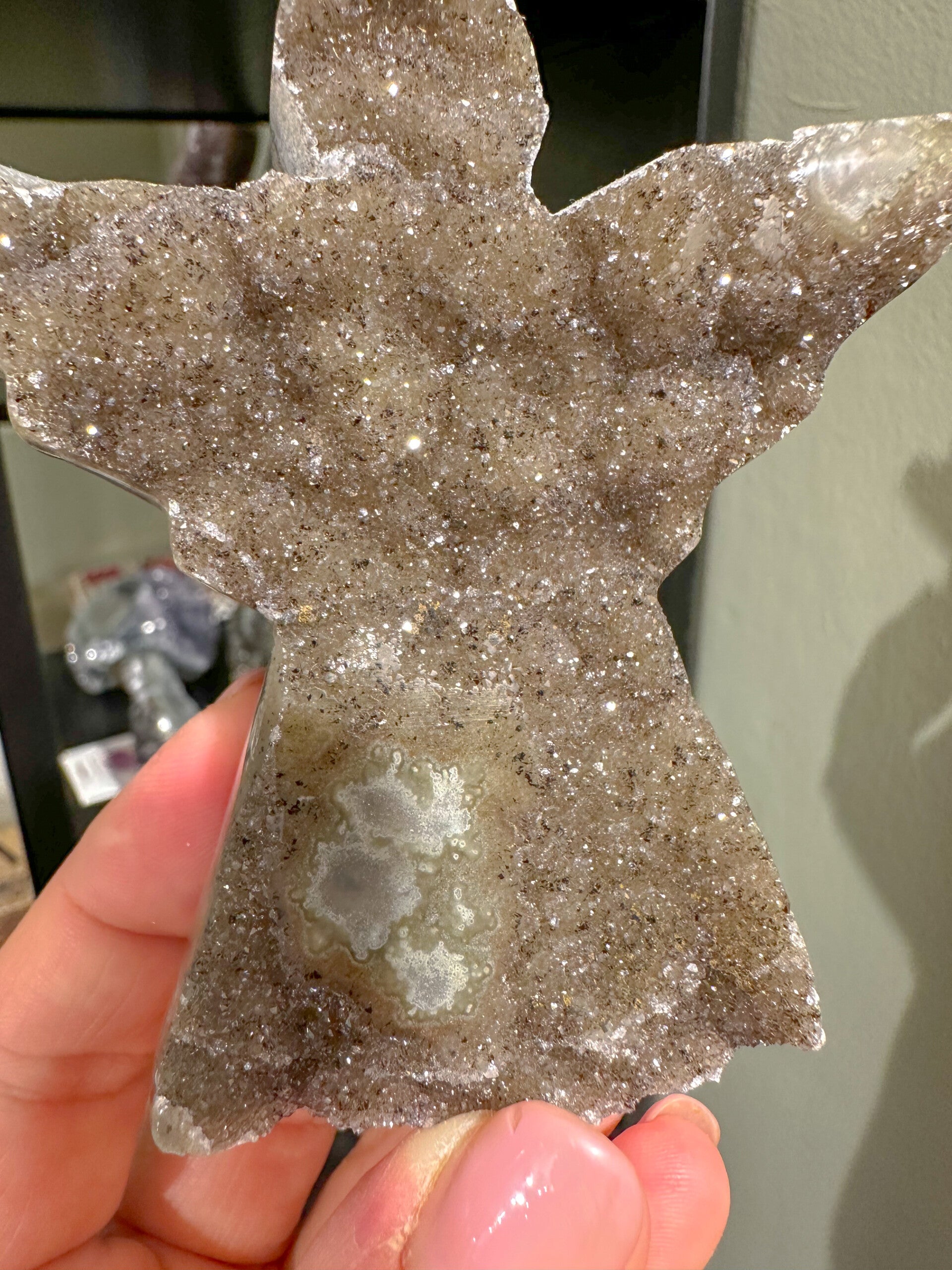 Super mooie kaneelkleurige engel met stalactiet.
