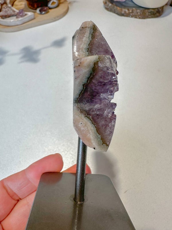 De amethist is namelijk een hele krachtige steen. Hij werkt beschermend, zuiverend, ontspannend, brengt harmonie en innerlijke rust.