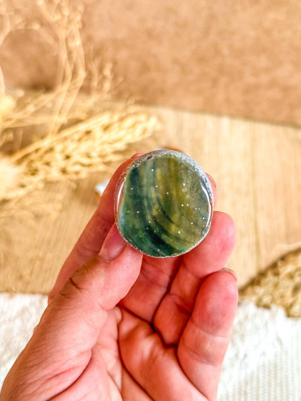 Polychroom Jaspis is een fijne steen tegen stress en brengt je weer in balans. Het is een steen die rust creëert in tijden van chaos. Het is een sterk aardende steen die je terug brengt bij jezelf.