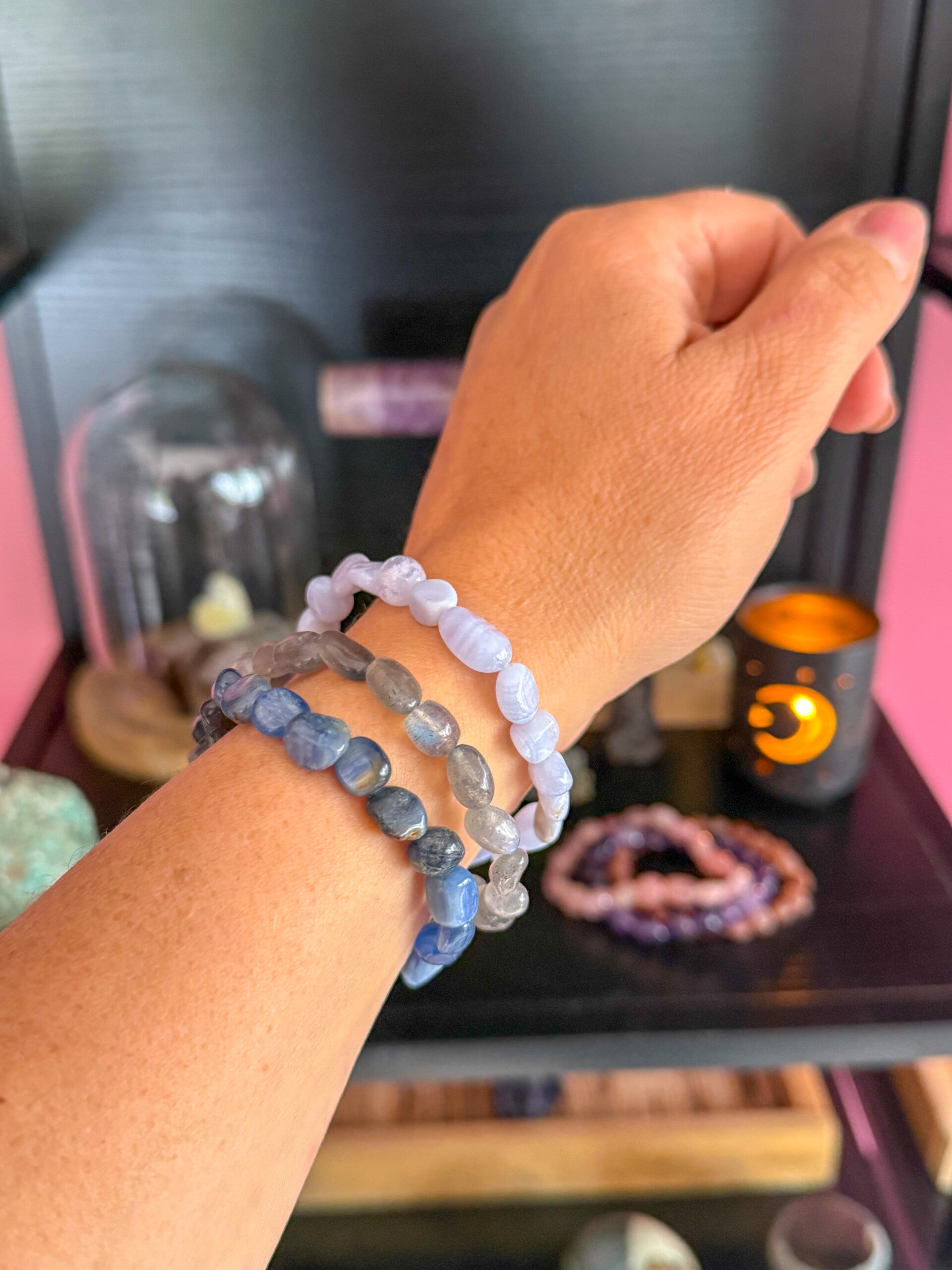 Kyaniet werkt zeer kalmerend en geeft gemoedsrust, wat helpt om ontspanning te vinden in gespannen situaties.