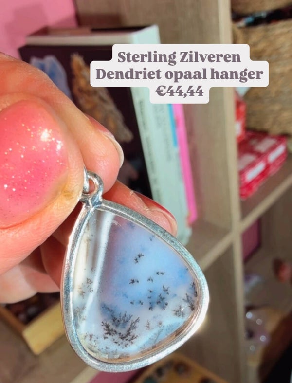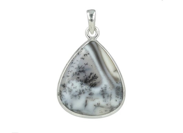 Dendriet opaal is een witte opaalvariëteit met donkere, varen- of boomachtige patronen (dendrieten) van ijzer- of mangaanoxiden.
