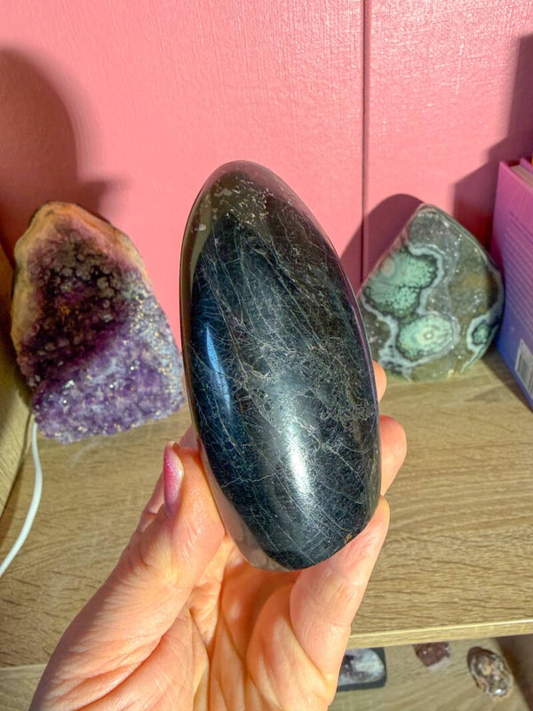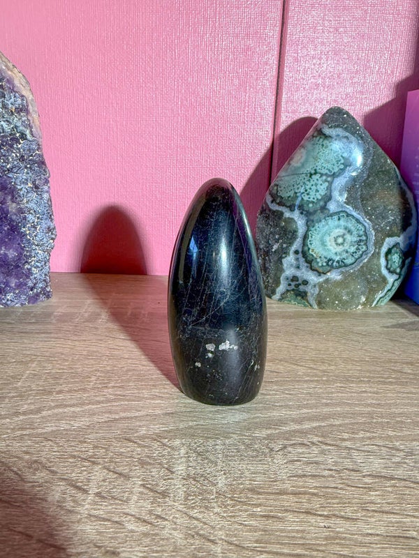 Zwarte toermalijn verbindt diep met de moeder aarde energie waardoor lichaam en geest kunnen ontspannen en zware energie en spanning wordt afgevoerd. Zwarte toermalijn zet de nieren aan en reinigt het lichaam van straling van elektrische apparaten.