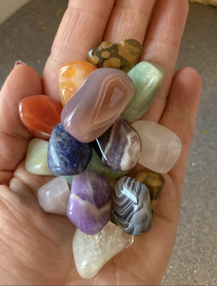 Handjevol Trommelstenen ongeveer 10 stuks t.w.v €15,00