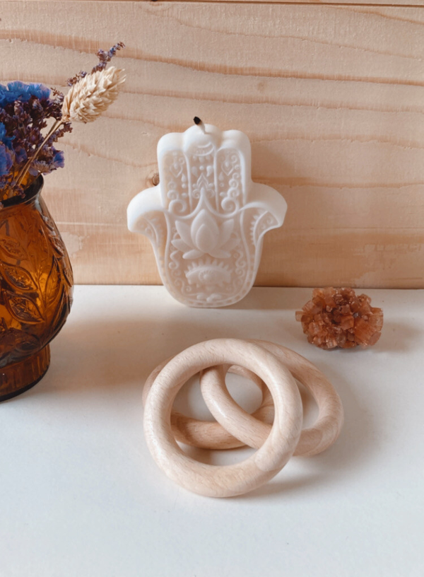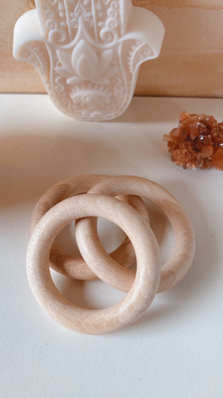 Houten standaard voor edelsteen bollen.