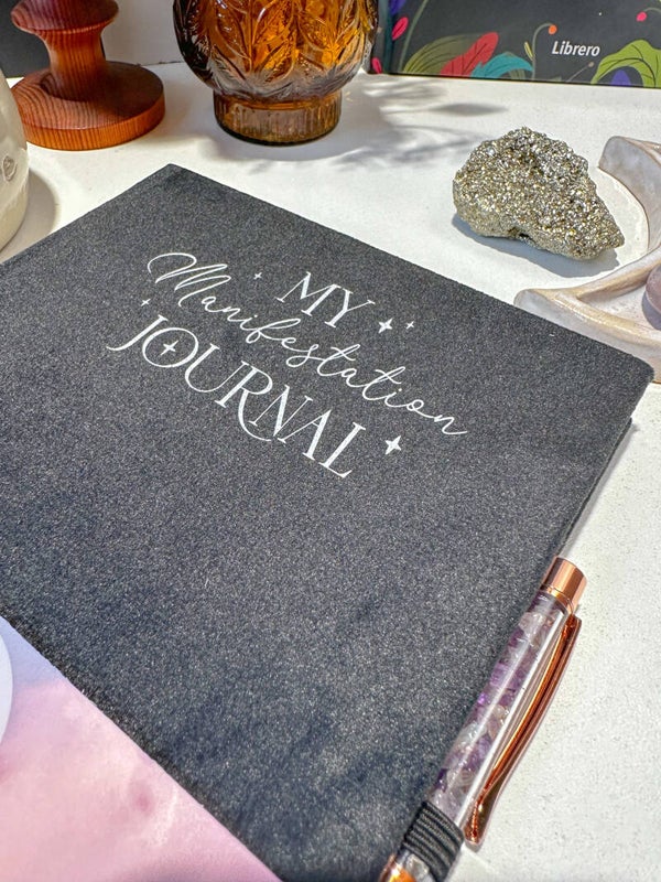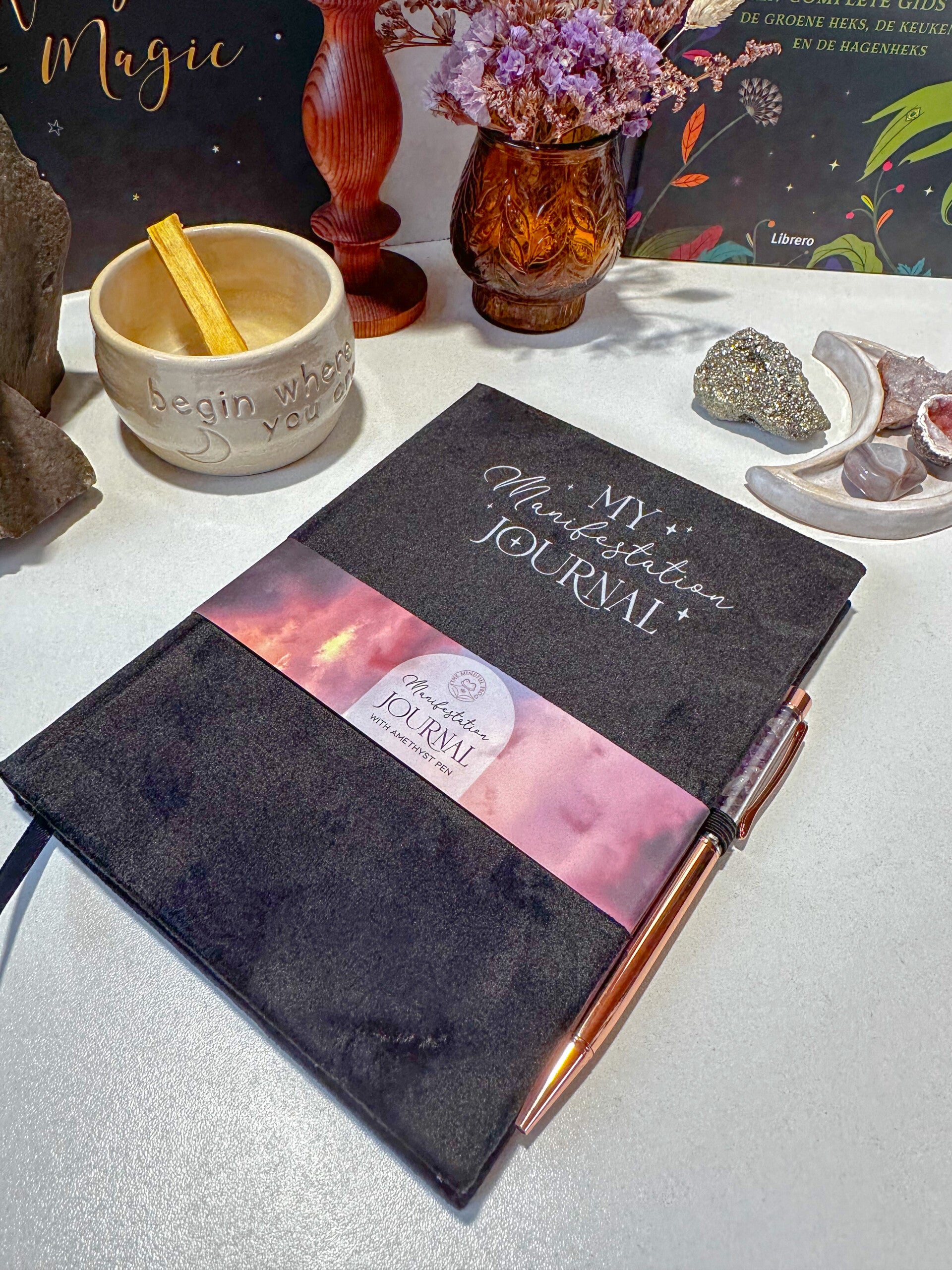 Een mooi boek waar je je manifestaties in kunt noteren met de bijpassende Amethist pen.