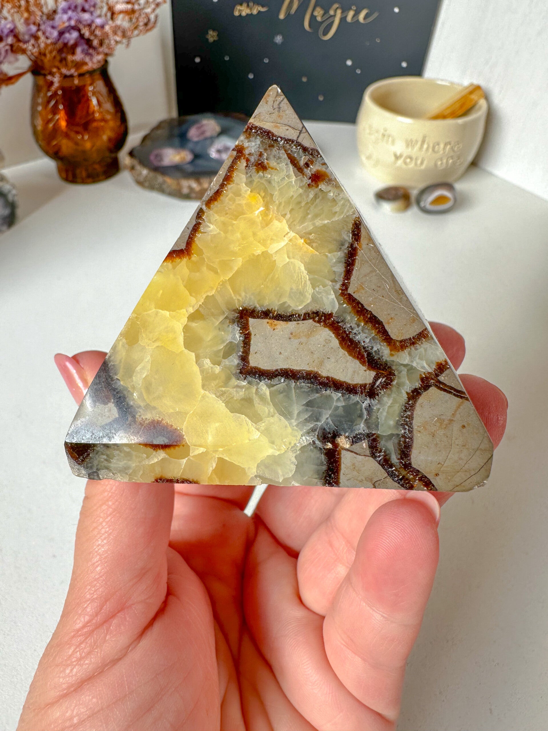 Septarie brengt de geest tot rust, geeft hoop en vertrouwen en brengt positieve energie. Hierdoor is het een hele fijne steen bij depressies, stress en spanningen.