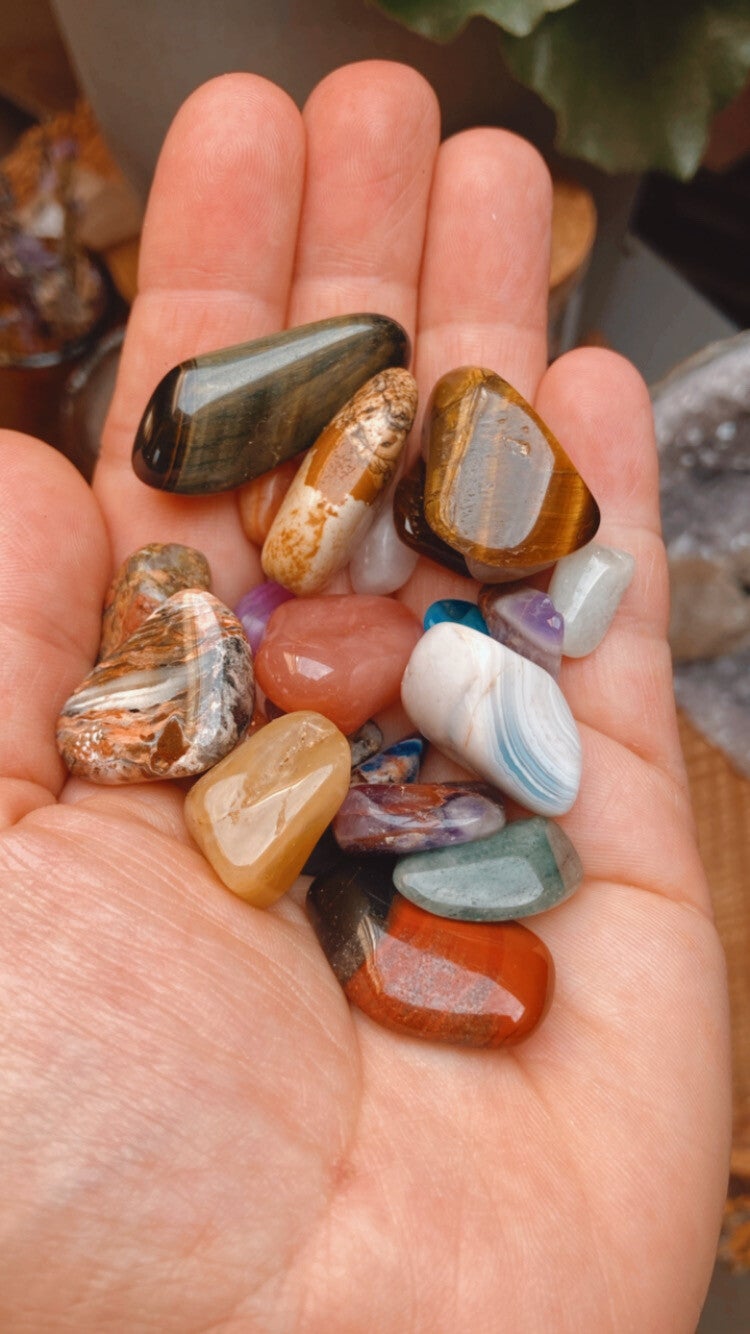 Superleuke schat kist met verschillende soorten en maten trommelstenen. Met liefde door mij uitgezocht en samengesteld 💕