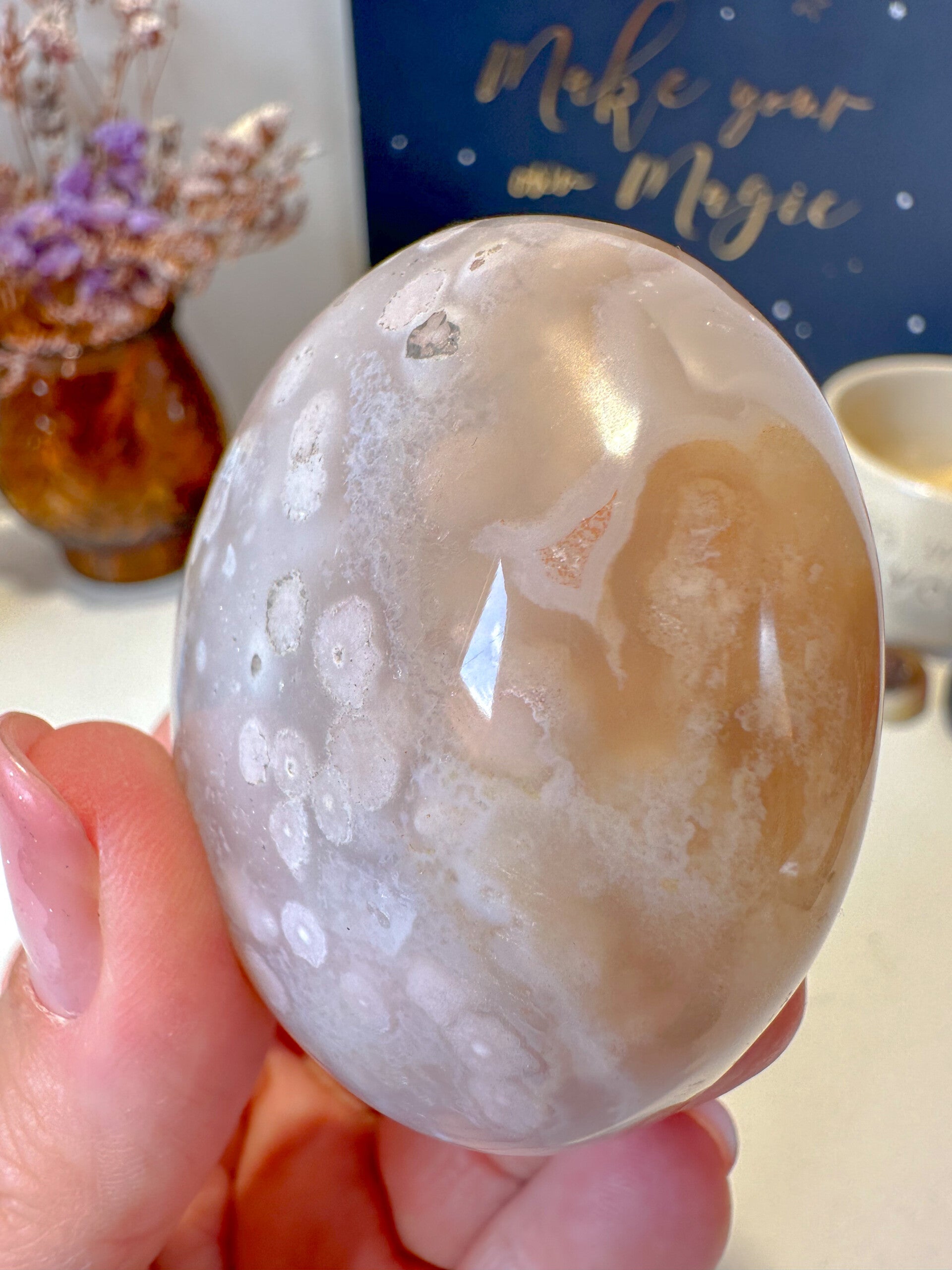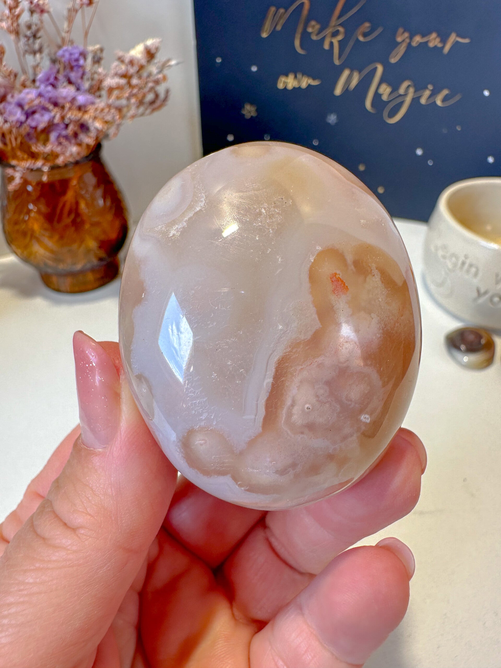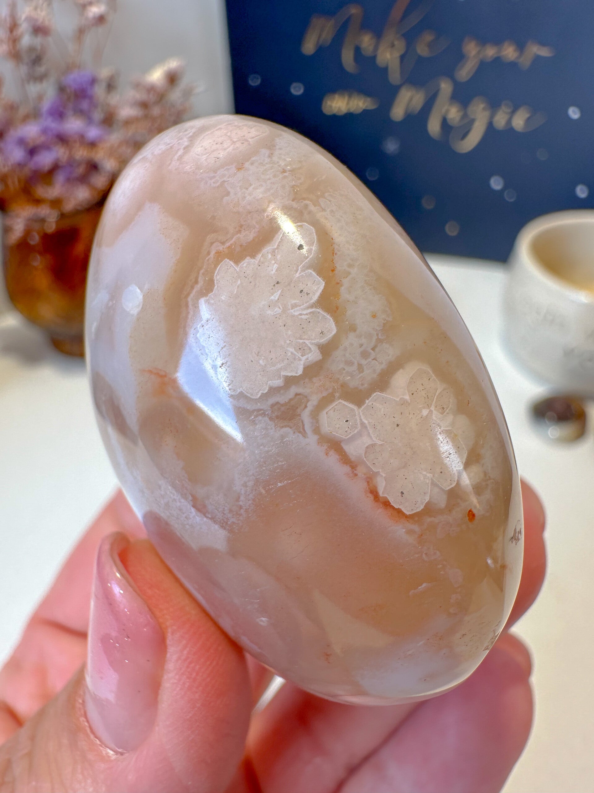 Naast de algemene eigenschappen van Agaat is Bloem Agaat een liefdevolle steen die je beschermt tegen angsten en je troost biedt. Leert je om in het NU te leven, moedigt je aan om jezelf te zijn en niet meer bang te zijn om afgewezen te worden, helpt blokkades op een zachte manier te verwijderen.