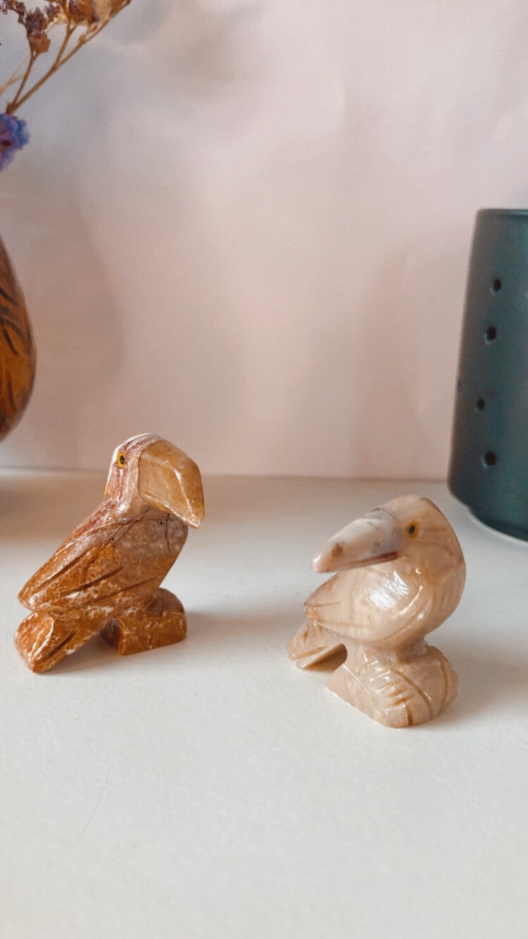 Superleuke speksteen Toekan in verschillende aardetinten.