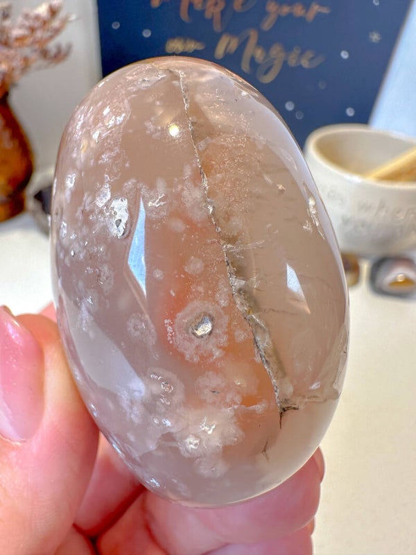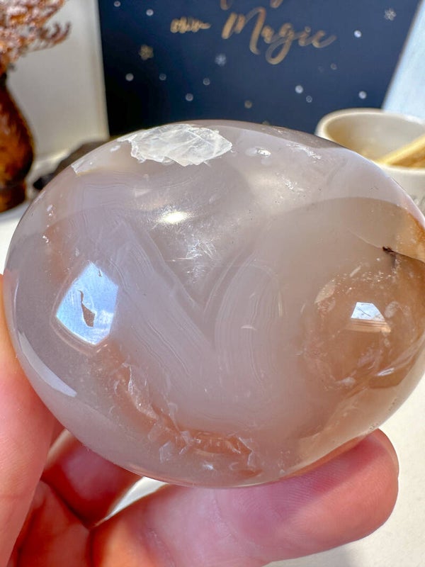 Naast de algemene eigenschappen van Agaat is Bloem Agaat een liefdevolle steen die je beschermt tegen angsten en je troost biedt. Leert je om in het NU te leven, moedigt je aan om jezelf te zijn en niet meer bang te zijn om afgewezen te worden, helpt blokkades op een zachte manier te verwijderen.