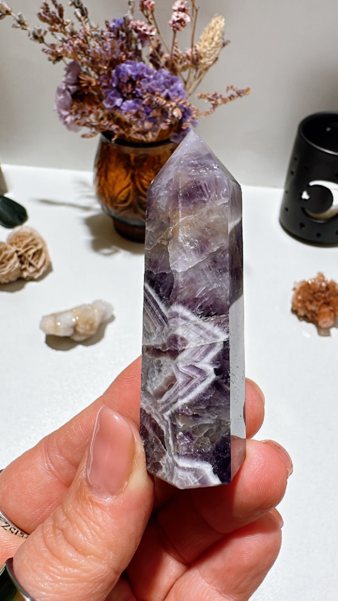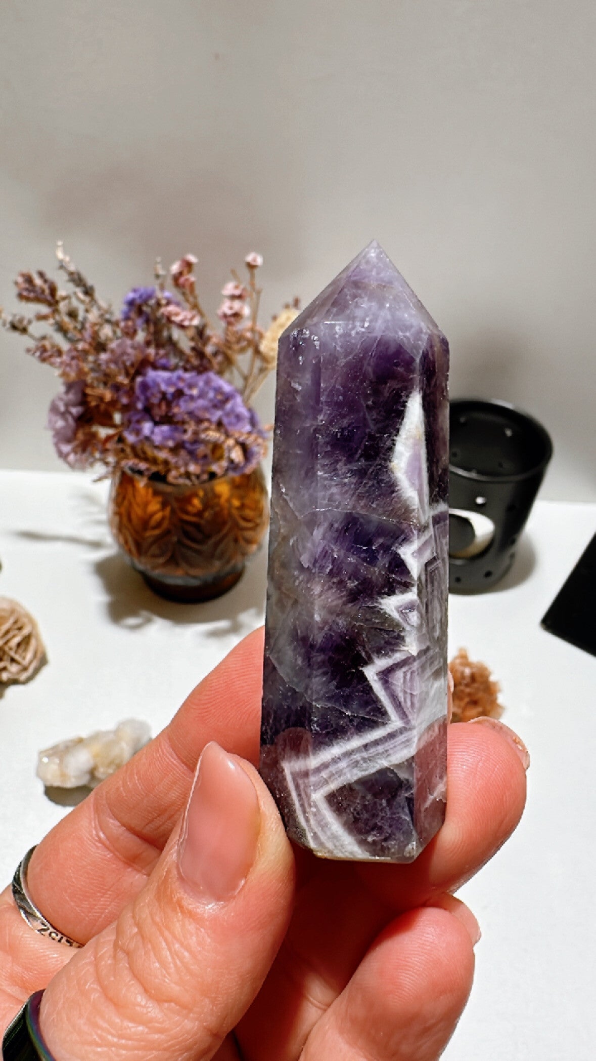 Chevron Amethist straalt stellaire golven uit, deze werken krachtig ontspannent op de hersenen en helpen je afstemmen op je hogere zelf.