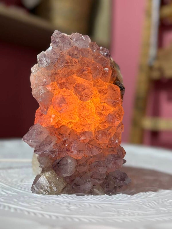 Supermooie Amethist lamp ( Brazilië) inclusief witte stekker en lampje.