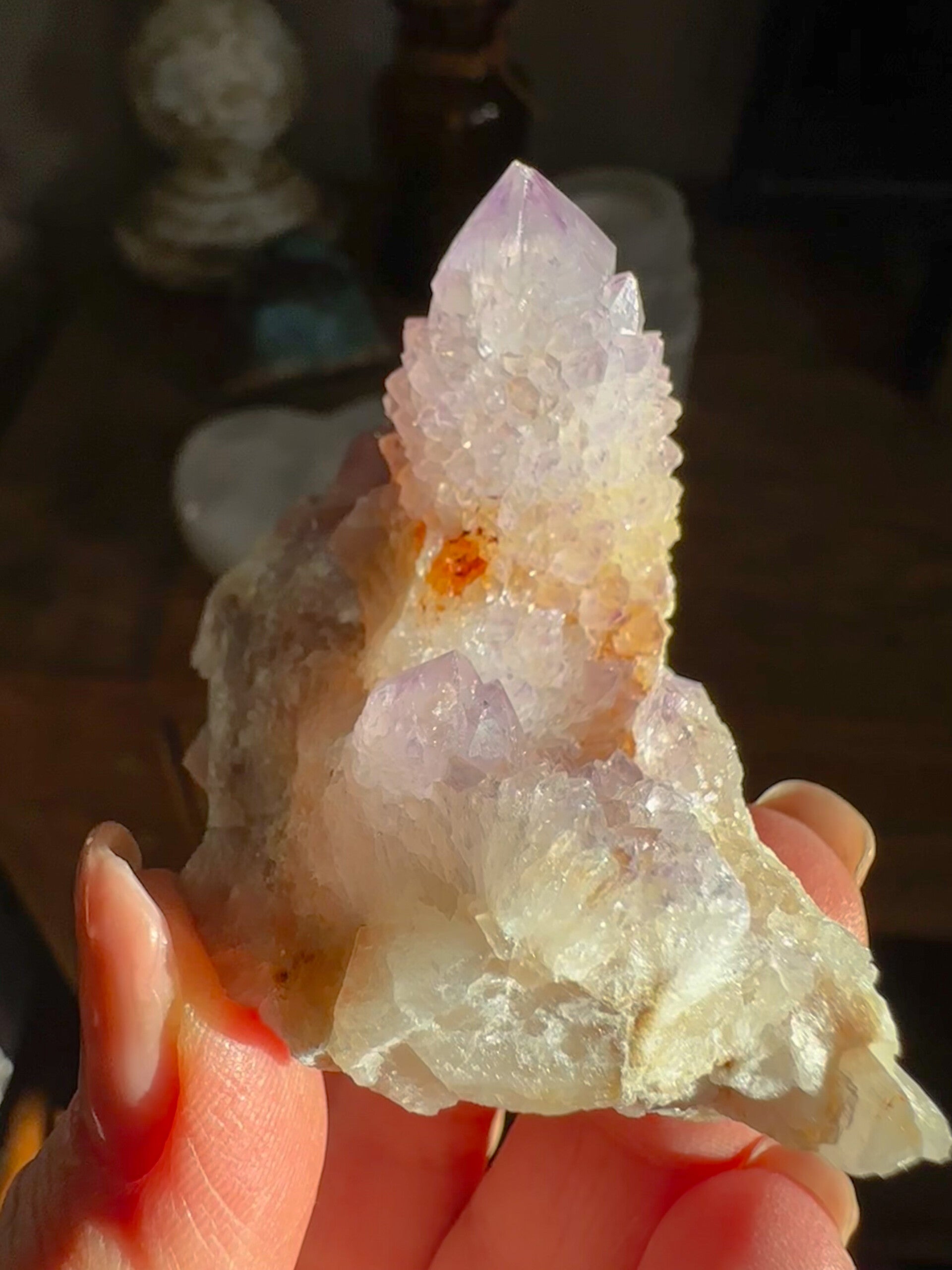 Deze mooie steen heeft meerdere benamingen: Spirit Kwarts, Cactus Amethist of Zielenkwarts en wordt alleen gevonden in Zuid-Afrika.