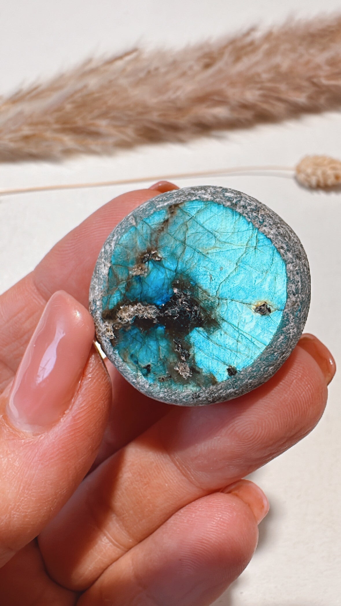 Labradoriet beschermt je energieveld tegen negatieve invloeden uit de omgeving en mensen die energie bij je wegnemen. De steen vermindert angst, geeft kracht en vergroot je (zelf)vertrouwen en doorzettingsvermogen. Labradoriet heelt wat is verzwakt en beschermt dat wat wordt bedreigd.